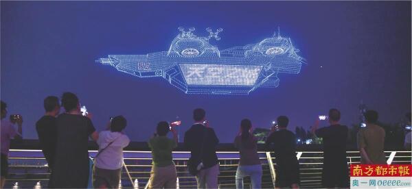 市民、游客在深圳湾观看以“天空之城 大有可能”为主题的无人机表演。新华社资料图