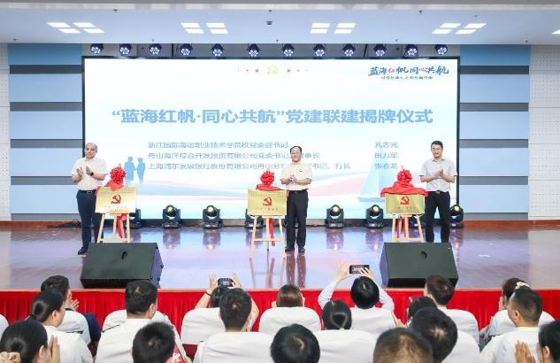 活动现场,市人才发展集团有限公司党支部、浙江国际海运职业技术学院航海工程学院党总支部、上海浦东发展银行舟山分行党总支三方签署党建共建协议,并由浙海职院党委副书记孔志光、舟山海投公司党委书记、董事长田力军、浦发银行舟山分行党总支书记、行长张春龙共同为“蓝海红帆·同心共航”党建联建项目揭牌,标志着三方协同发展迈出关键一步。