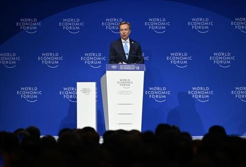 6月25日,世界经济论坛总裁博尔格·布伦德在2025夏季达沃斯论坛开幕式上发言。新华社记者 孙凡越 摄