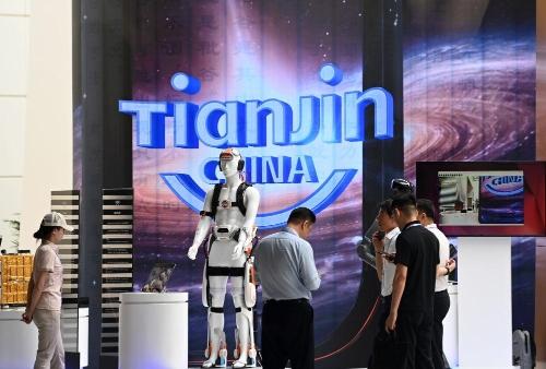 6月25日,在国家会展中心(天津),嘉宾在天津展区参观。新华社记者 赵子硕 摄