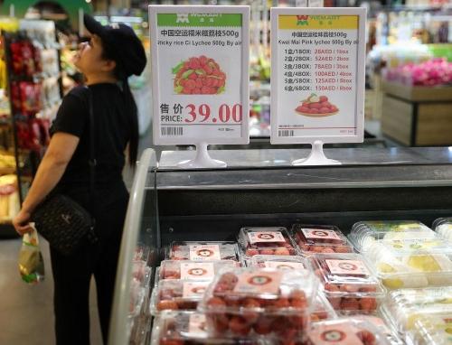 在推荐下,不少顾客将荔枝顺手放入购物车。“这个荔枝真的太甜了,跟我们在菲律宾吃的完全不一样!”一名菲律宾裔顾客试吃后立即买了两盒,“我想带去办公室和大家一起分享。”
