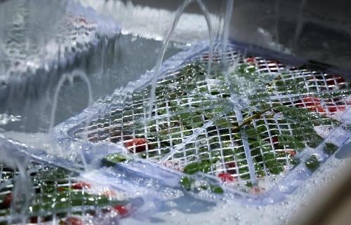 ↑6月4日,在广东茂名高州市广东铭景农业发展有限公司,荔枝进行预冷处理。