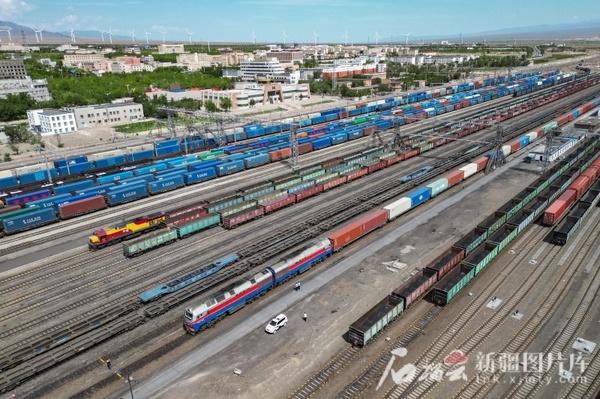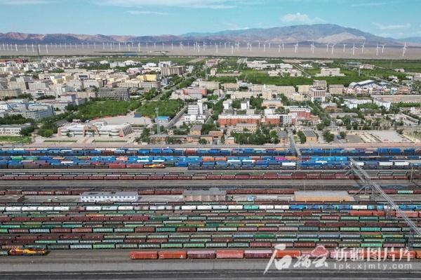 6月24日,阿拉山口站内一列列中欧(中亚)班列整装待发。