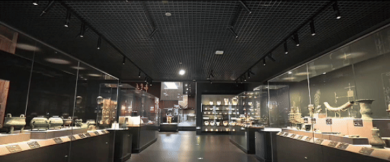 硕大篆书“史”字高悬于建筑外墙,两座西周铜牺尊造型石像矗立门前……走进中国历史研究院中国考古博物馆,仿佛叩开了中华文明探源的大门。