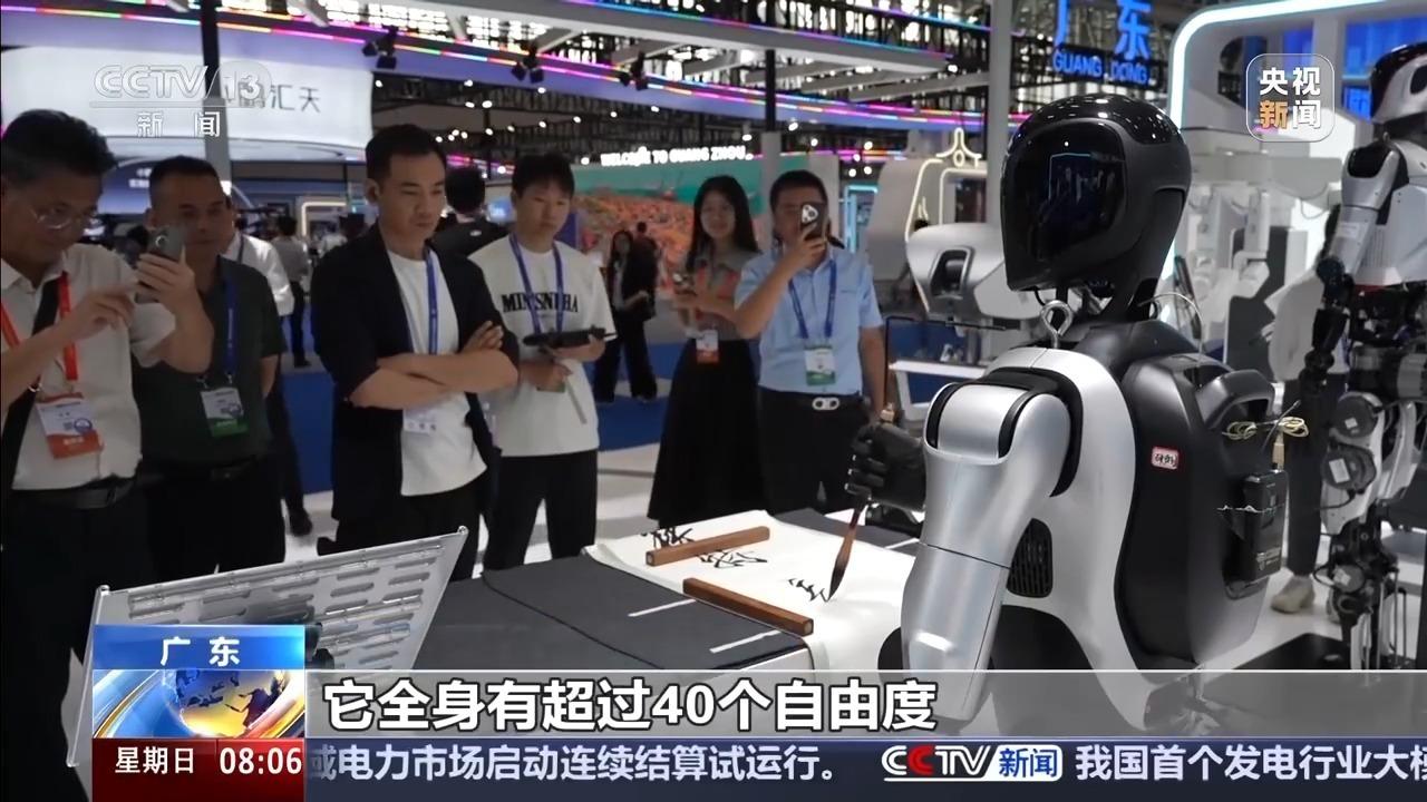 画面中的这款人形机器人,可以流畅地书写毛笔字,工作人员告诉记者,因为搭载了自研的多模态感知系统,它具备视觉、听觉等全方位环境交互能力。