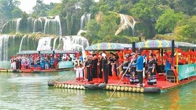 崇左市大新县西与越南接壤。近年来,大新县充分发挥跨境旅游合作区的“磁吸”效应,以文化旅游加强中越人文交流,开辟中越文明交流互鉴新路径。大新县举办中越德天(板约)瀑布跨境旅游合作区嘉年华、“三月三”系列活动等,推出壮族风情舞蹈、中越美食长桌宴、中越界河山歌擂台赛、中越传统手工艺品集市、中越名特优商品促销活动等,让文化潮声与德天瀑声在边境线上交“响”呼应。