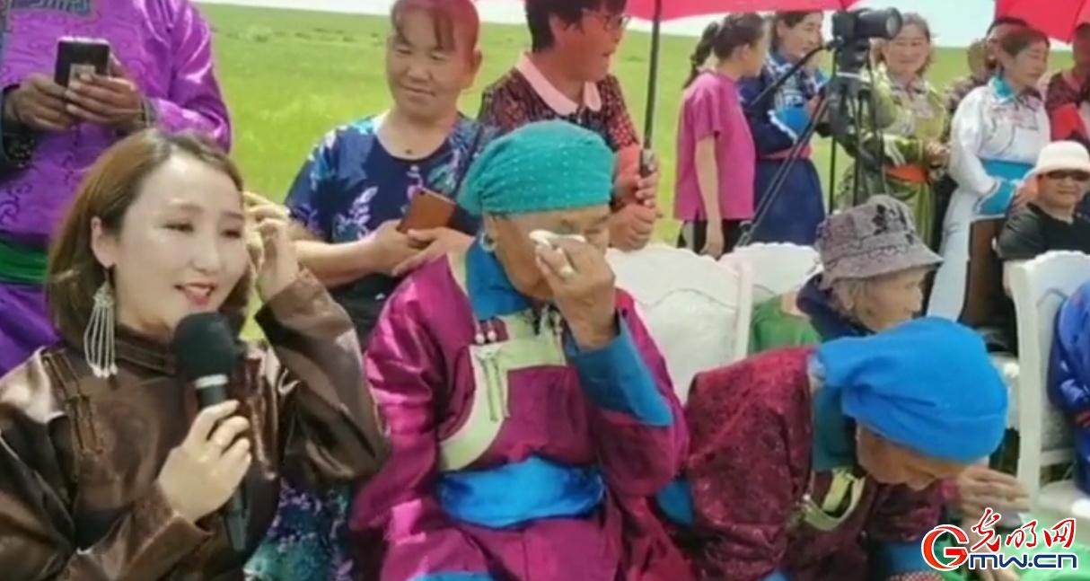 “乌兰牧骑的孩子们就跟我的孩子是一样的”,说罢老奶奶擦拭了眼角(受访者供图)