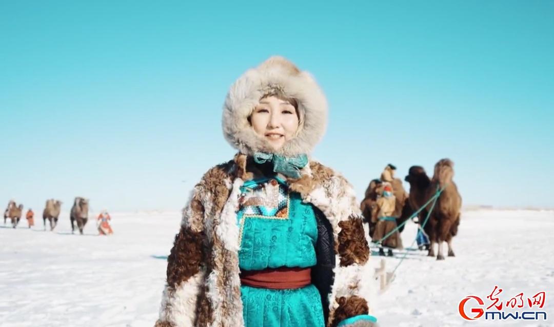 冬季的草原白雪皑皑,道力根身着民族服饰演出(受访者供图)