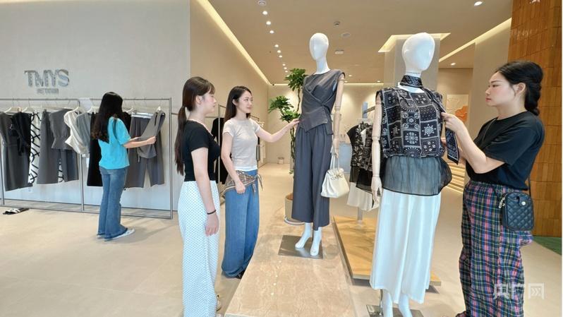 市民在“天门衣尚”品牌馆内挑选衣服(央广网发 天门市委宣传部供图)