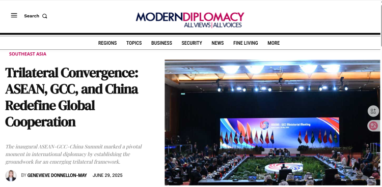 文章最后强调,2025年东盟—中国—海合会峰会的举行或将被视为全球外交新时代的开端。与传统的西方中心同盟不同,这一三方合作机制锚定经济互补、区域相互依存以及对多极平衡的共同追求,有望为促进国际合作与全球南方国家发展贡献核心力量。