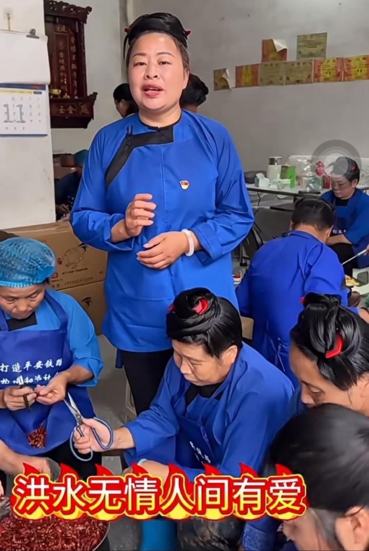 “月寨嬢嬢团”把乡亲们凑出的自家食物烹饪成佳肴,送往洪灾救援前线,她们曾是“村超”赛场活力四射的啦啦队,如今是洪灾面前的娘子军。朴素的蓝布衣裳上,党员徽章闪闪发光。