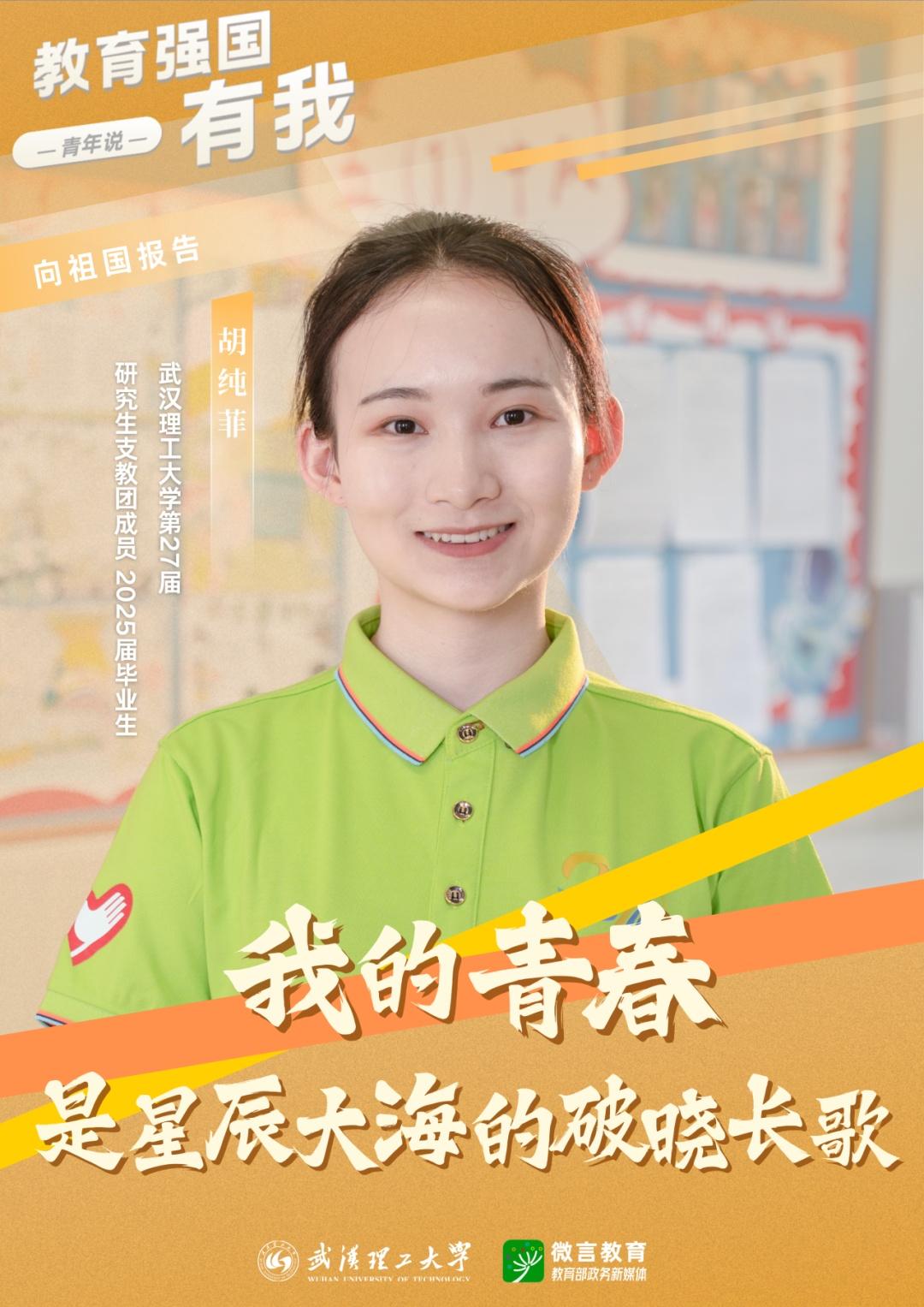 习近平总书记强调,希望广大青年坚定理想信念,厚植家国情怀,练就过硬本领,发扬奋斗精神,到祖国和人民最需要的地方发光发热,为中国式现代化建设贡献青春力量。教育强国建设,青年何为?“七一”之际,教育部政务新媒体推出“教育强国,有我!”网络主题宣传活动之“青年说(报国篇)”系列,展现青年学子将个人理想融入国家发展的青春担当。今天,跟教育小微通过1组海报,一起来看武汉理工大学学子如何用青春向祖国报告——