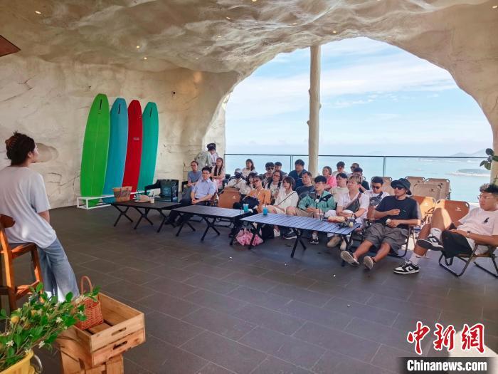 松门第一家海边民宿如何诞生?油菜花地里的“村咖”怎么与乡村旅游双向奔赴?……在“悬崖洞穴”咖啡馆,张晓婷等4名温岭青年和台湾青年面对面交流,分享自己的创业故事。