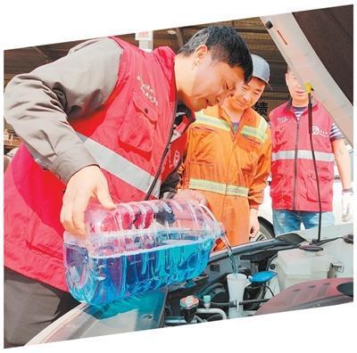 浙江省宁波舟山港,党员货车司机开展车辆检修保养志愿服务。白壁如摄
