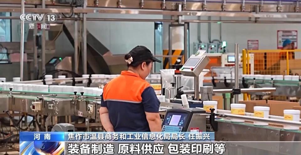 焦作市温县商务和工业信息化局局长 任振兴:我们县以新式茶饮企业为龙头,通过不断优化营商环境,延链补链招商,目前已经引进了装备制造、原料供应、包装印刷等20余家产业链企业,带动就业岗位4000余个。