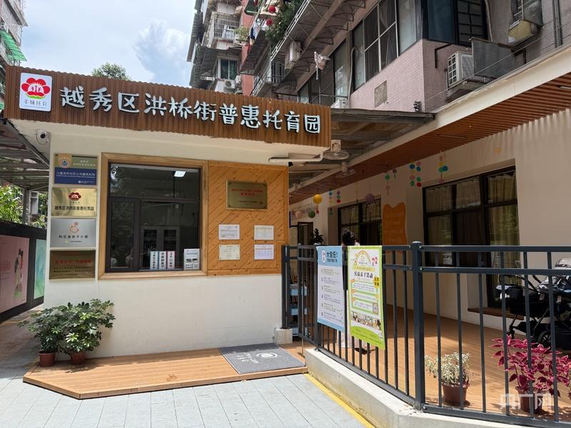 越秀区洪桥街普惠托育园的选址曾是一大难题。“我们花了三个月才敲定位置,要在老城区找到既安全、通风又安静的空间并不容易。”街道公服办负责人陈映丹介绍,园所最终由禁毒站与出租物业腾挪改造而成,虽仅300平方米,但配套齐全,包括两间教室、配餐区与户外活动场地,目前已满员运行。