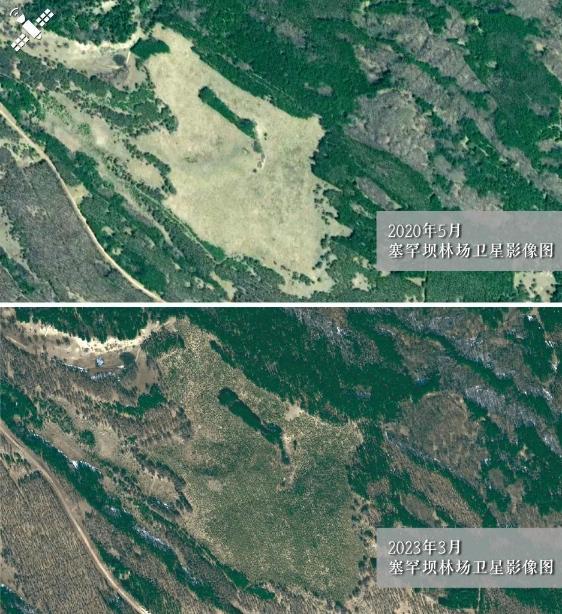解读:2023年与2020年相比,塞罕坝林场内的森林覆盖面积持续提升。