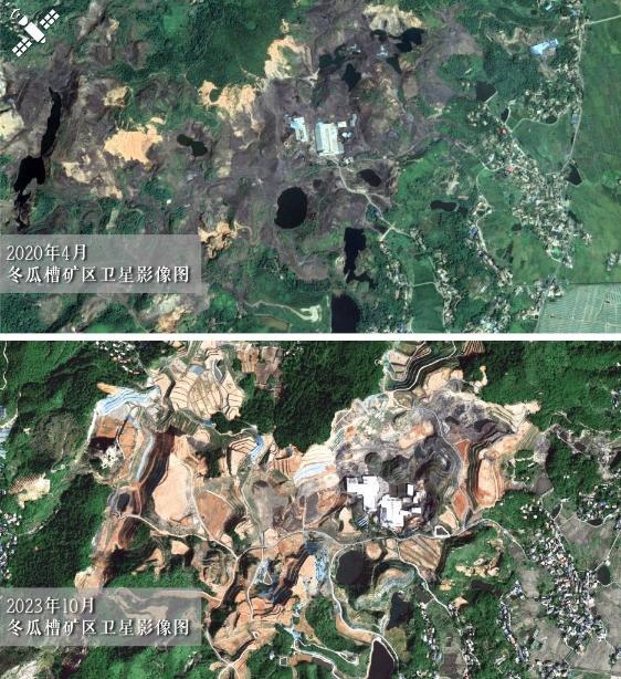 解读:2020年矿坑对比2023年复绿梯田:冬瓜槽实现废弃矿山到耕地草场的再生。