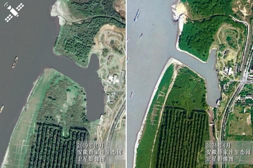 解读:与2019年整治前的情况对比,2024年经整治后的安徽马鞍山薛家洼生态园生机盎然。