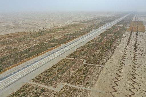 由于沿线地形气候特殊,在铁路建设之初,施工部门就把生态治沙的理念融入施工设计中,根据不同地段特点,因地制宜,多措防沙,成功地在铁路沿线构建起一道道绿色安全屏障。这些屏障宛如卫士一般,将黄沙牢牢阻拦。