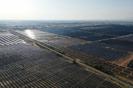 内蒙古杭锦旗蒙西基地库布其200万千瓦光伏治沙项目区(2024年6月5日摄)。