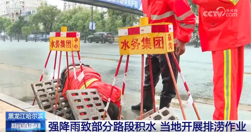 黑龙江哈尔滨:强降雨致部分路段积水 当地开展排涝作业