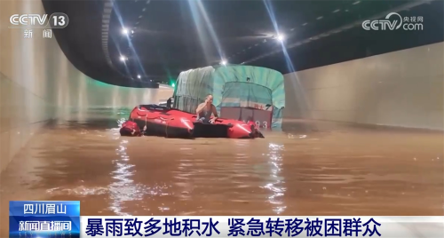 四川眉山:暴雨致多地积水 紧急转移被困群众