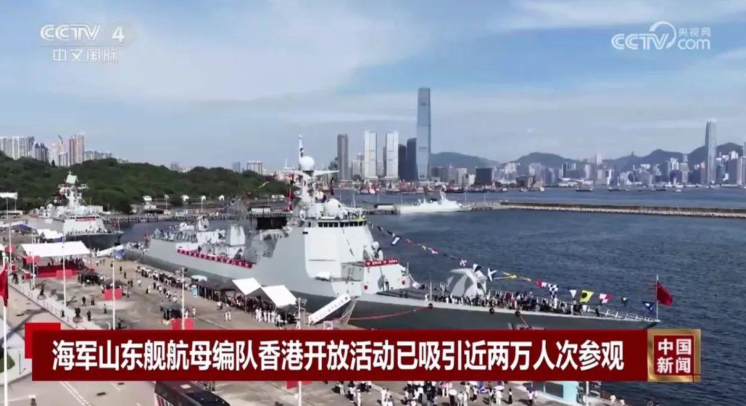 在香港回归祖国28周年之际,中国人民解放军海军山东舰航母编队抵达香港特别行政区,开启为期5天的访问活动。5日,舰艇开放活动进入第2天,共有近两万人次相继登上舰艇参观。