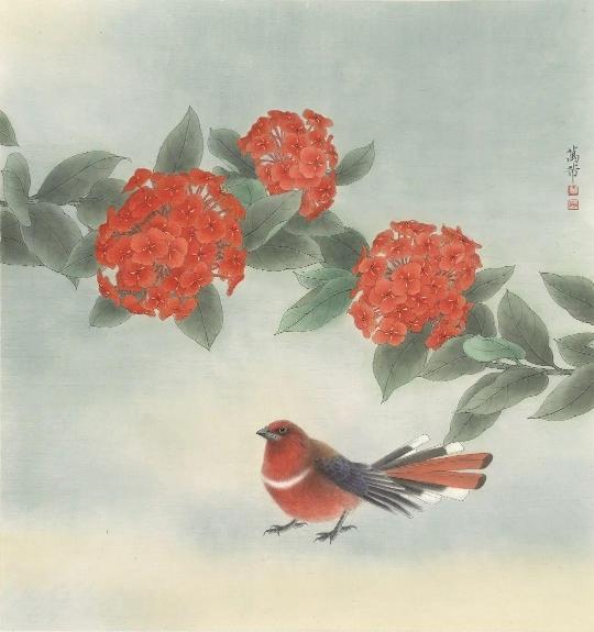 万芾是上海实力派花鸟画家,她笔下“花鸟世界”中的二十四节气,作品色彩丰富,构图现代而不失传统韵味。