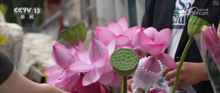 现在正值夏季,云南也有不少应季鲜花。比如成团成簇、色彩鲜艳的绣球花就是夏日鲜花市场的主角之一。这样一捧清新淡雅的荷花是入夏后人气相当红火的销冠。