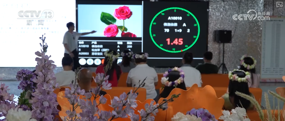 “游客专供版”的鲜切花拍卖也采用了“荷兰式降价拍卖”,大家借助和系统相连的手机小程序进行操作。心仪的鲜切花出现,大屏幕上的指针开始飞快地从高价向低价转动。第一个出价的人达成交易,这让拍卖时机变得非常微妙,十分考验大家的眼力和手力。和大宗交易相比,这里的场地和规模都相对“迷你”,但是紧张的氛围是一点不少。