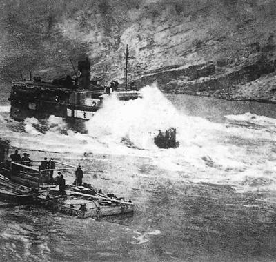 民生公司的船只经过激流险滩,将战略物资运送到后方。湖北省宜昌市档案馆供图