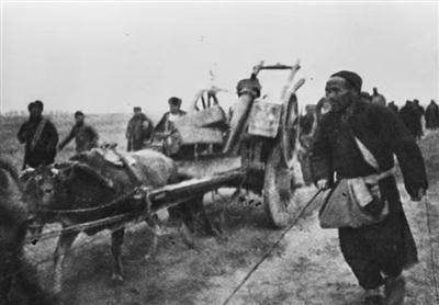香城固战役中群众向前线运送物资。中国人民抗日战争纪念馆供图