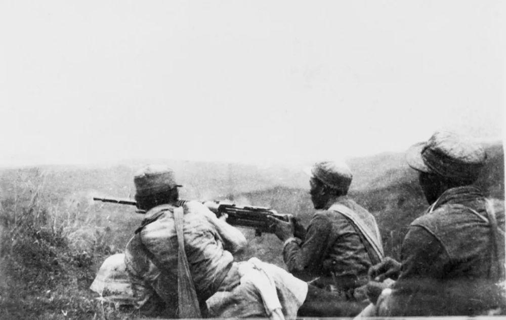 这是在山西狮脑山血战中的我军机枪阵地。 新华社发