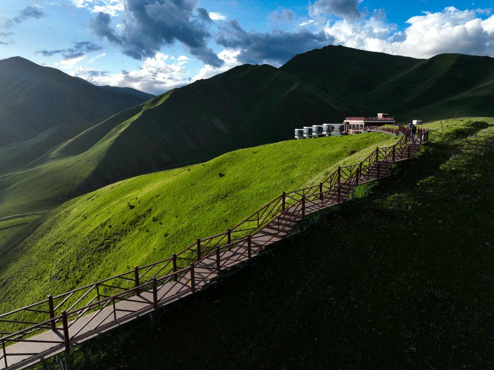 游客在位于青海省果洛藏族自治州久治县门堂乡境内的黄河女儿湾游览拍照。该景点由上海援青团队打造(无人机照片,2024年7月19日摄)。 新华社记者 张龙 摄