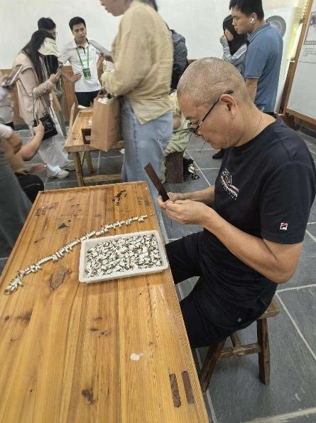 市级非物质文化遗产项目代表性传承人周平演示“绑笔”环节