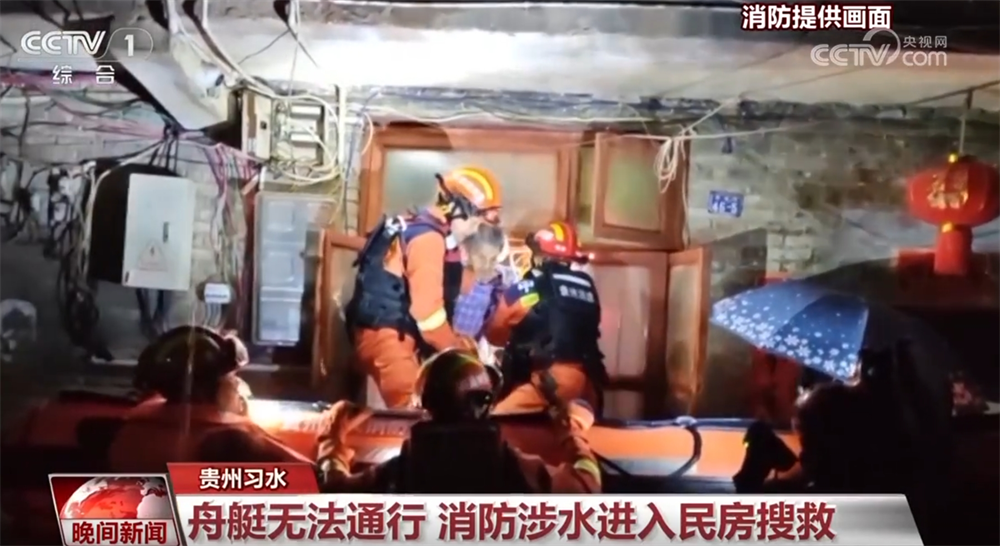 8日晚到9日清晨,贵州遵义习水县遭遇强降雨袭击,导致县城多处低洼地带积水严重,道路被淹、房屋进水,多名群众被困。当地消防部门展开救援,但因部分地区通道狭窄,舟艇无法通行,消防人员将绳索系在身上,涉水进入民房展开搜救。