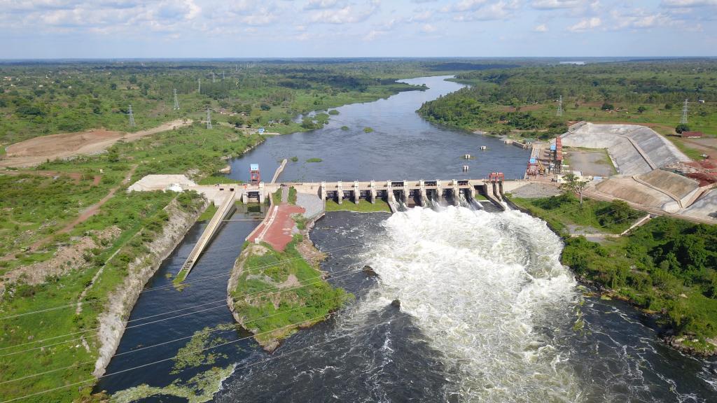 这是位于白尼罗河上的乌干达卡鲁马水电站航拍画面(2023年12月14日拍摄)。新华社发(王剑 摄)