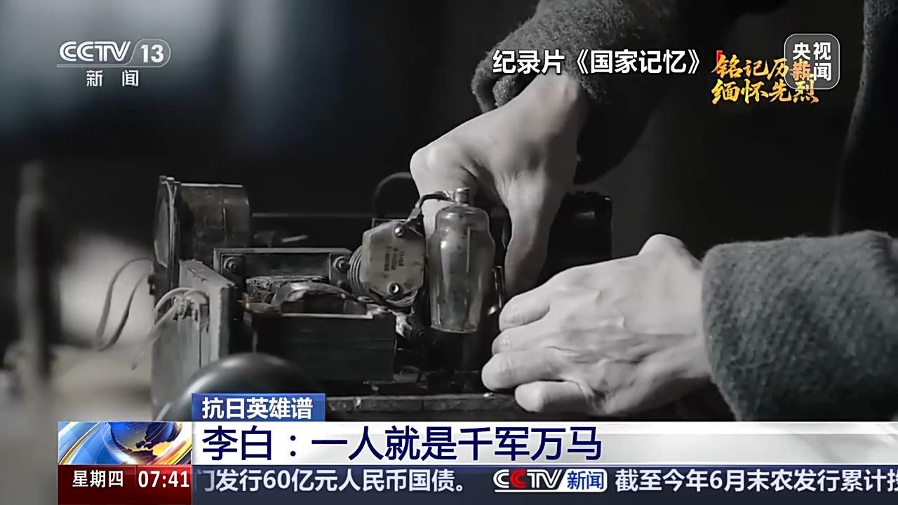 1942年9月的一天,李白拿到几份重要情报,立即上报延安。半夜,红色的电波划破黑夜的长空。发报即将结束时,突然传来警报声,李白沉着地把最后一段电文发完,迅速拆散发报机,拉开卧室一块活动地板,将它藏在下边。日本宪兵闯进房间,四处搜查。