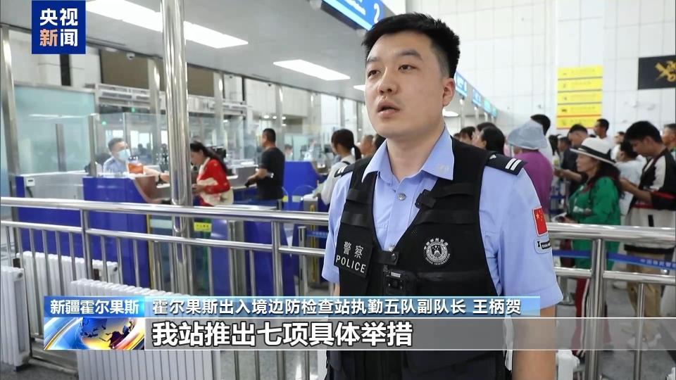 霍尔果斯出入境边防检查站执勤五队副队长 王柄贺:为保障旅客高效通关,我站推出七项具体举措,比如预约通关、错时通关、延时通关。现在日均查验人数较去年增长近一倍,有效提高通关效率。