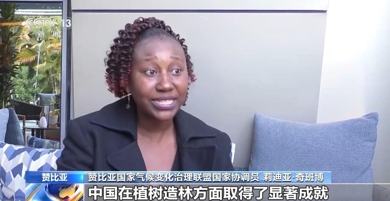 赞比亚国家气候变化治理联盟国家协调员 莉迪亚·奇班博:中国在植树造林方面取得了显著成就,中国还通过种草来缓解沙尘暴的风险,这些都是中国在环境治理方面所取得的成就,有助于民众更加适应生活环境。