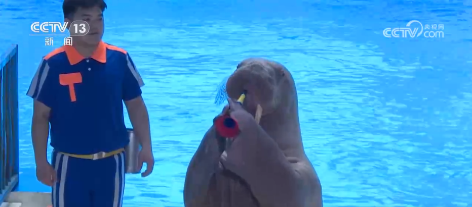 正值暑期,徐州海洋极地世界也吸引了不少家长带着孩子来游玩,这里的足球元素也为这个夏日增添了别样的激情。在海洋剧场的表演引得现场观众阵阵欢呼。小朋友们也积极参与互动挑战,将足球场上的激情与海洋世界的奇妙融合在一起。这个夏天,当地积极拓展“苏超”效应,特别推出“票根经济”半价福利和夜宿海洋馆等活动,让比赛的热度贯穿整个暑期。