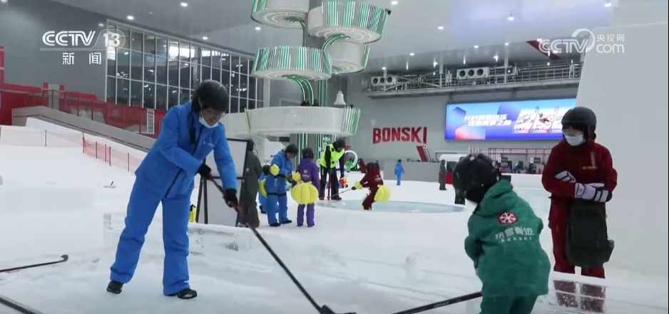 室外夏日炎炎,室内冰天雪地。在河北石家庄室内滑雪场,暑期里每天早上都有许多滑雪爱好者排队入馆。除了滑雪,场馆里还设置了冰雪乐园,游客可以在这里玩冰上冰壶、陀螺、攀岩等冰上游戏,还可以在用雪块砌成的迷宫里体验一把惊险刺激的地道战,满足大家亲子娱雪的多样需求。