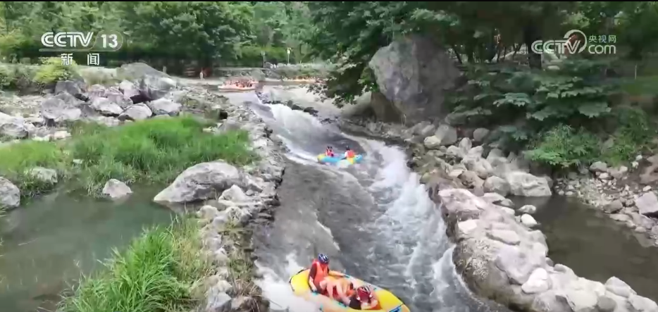 持续的高温也让漂流成为热门选择。长江河漂流横跨河南固始县与安徽金寨县,全长8公里落差达126米,漂流时间2个多小时。
