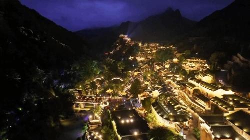 白天宛如“清明上河图”再现,夜晚更似现实版的“仙侠世界”,这个名叫望仙谷的悬崖上小镇,吸引着世界各地的游客前来打卡游玩。然而在多年前,这里却因无序采石而造成环境破坏,经济发展停滞不前。