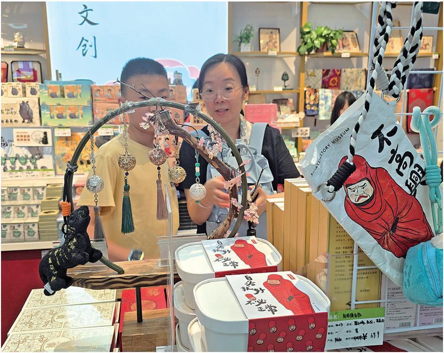7月3日,游客在陕西历史博物馆文创店挑选文创产品。