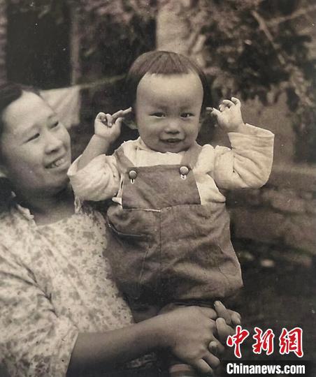 母亲抱着林天民“揪耳朵”的抓拍照。受访者供图