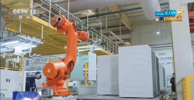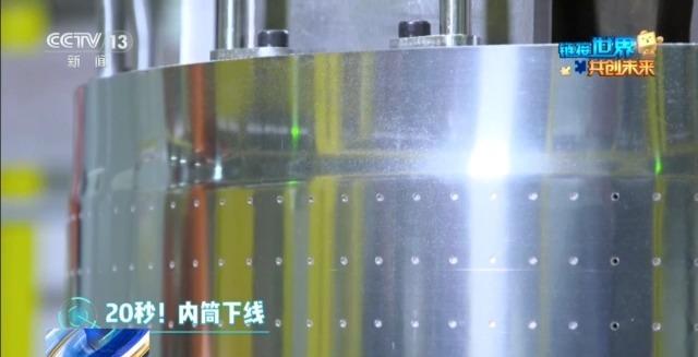 零部件运到工厂,生产环节马上跟上,“链上很忙”在这里的体现尤为具体:洗衣机内筒采用激光无缝焊接技术,能够保护高端面料衣物不受损坏。从不锈钢卷和钢板开始生产,内筒产线每20秒就能下线一个内筒。工厂的生产线可以同时生产320种型号的洗衣机。从原料到一台完整的洗衣机,最快只需38分钟。