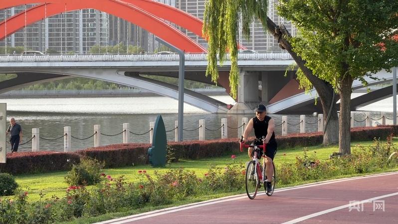 市民在汾河景区自行车专用道骑行(央广网记者 张晋鹏 摄)