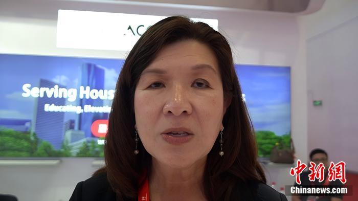 美国休斯顿亚裔商会主任芭芭拉·乔 7月16日在北京链博会接受采访。 中新网 巩微微 摄